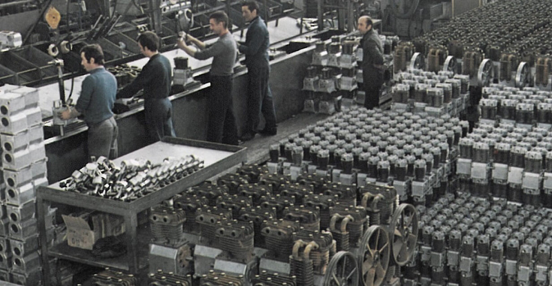 1972: FINI разработала первый в мире поршневой компрессор с прямым коаксиальным приводом и выходит на мировой рынок |