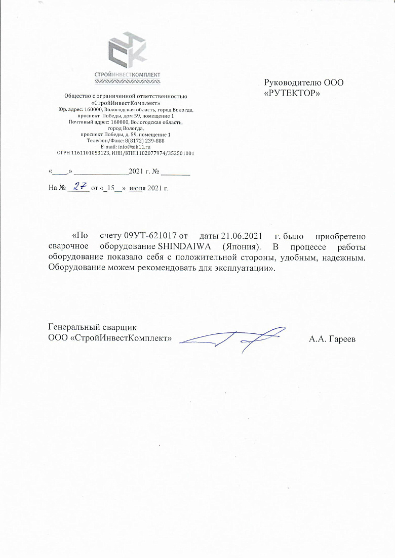 Остался доволен сварочным аппаратом. Под наши задачи подходит отлично. Менеджер Павел помог выбрать подходящее оборудование. Большое спасибо ему и всей компании!