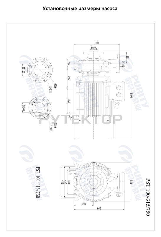 Консольно-моноблочный фланцевый насос PSTG 100-315/750 (N)