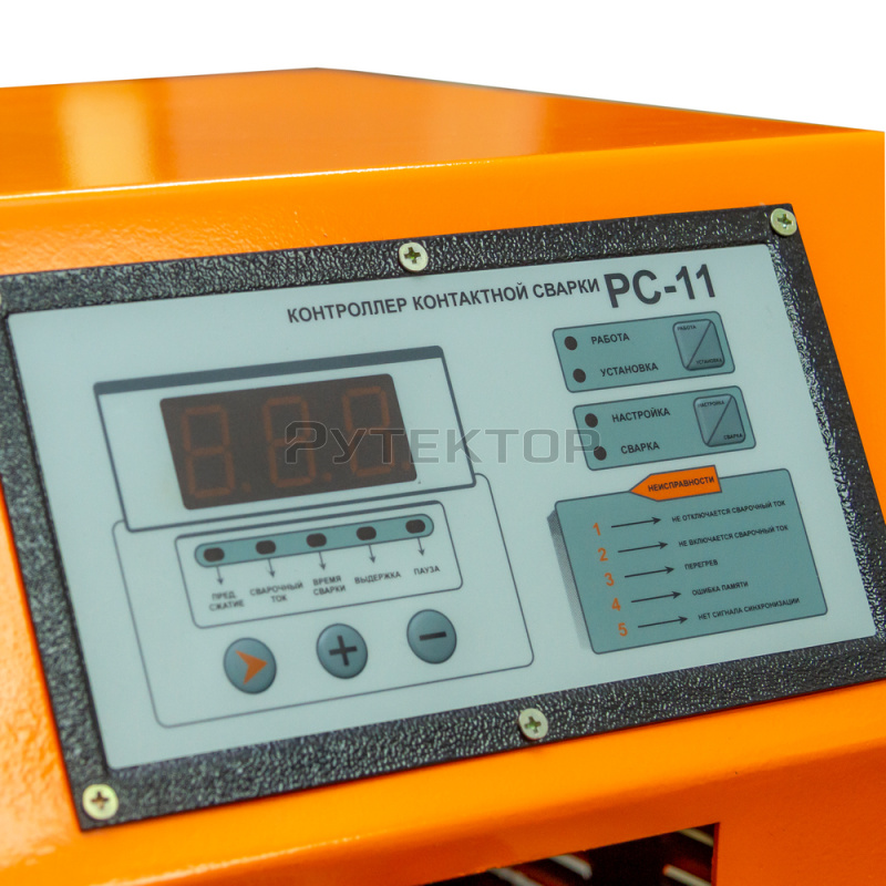 Микропроцессорный контроллер режимов сварки позволяет бесступенчато регулировать сварочный ток, время сварки, время спада тока.