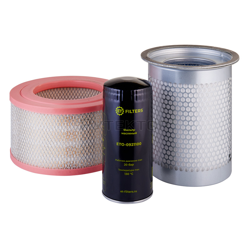 Сервиcный набор компрессора ET SL 30-45 new. Набор включает фильтр масляный, фильтр воздушный и сепаратор. Рутектор - представитель и импортер продукции бренда ET.