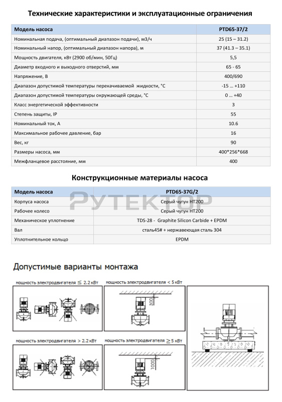 Насос в линию PURITY PTD 65-37G/2 (N)