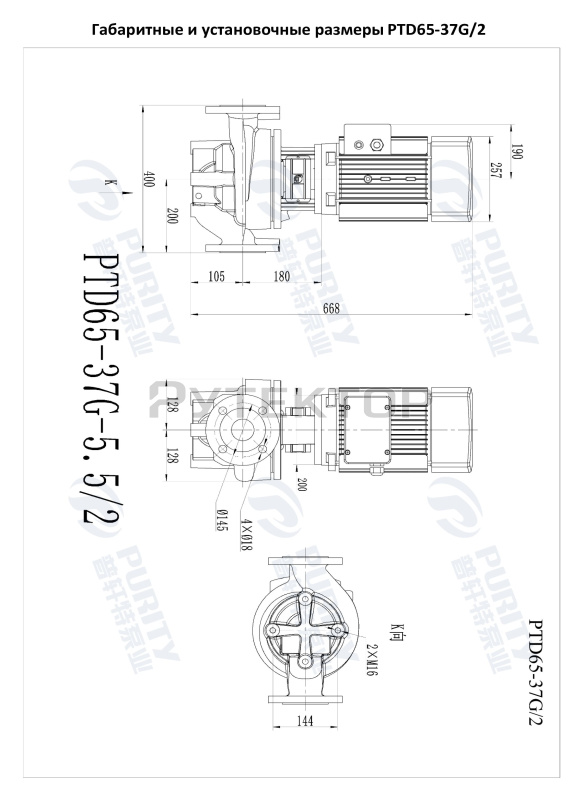Циркуляционный насос In-Line PURITY PTD65-37G/2 (N) предназначен для перекачивания чистых невзрывоопасных жидкостей, без механических и волокнистых включений, не агрессивных к конструкционным материалам насоса, по своим физическим и химическим свойствам близким к воде.