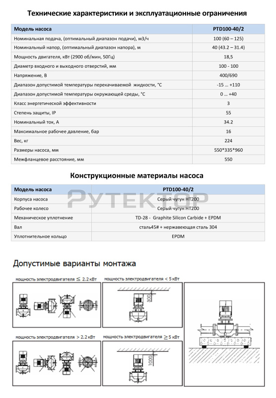 Циркуляционный насос In-Line PURITY PTD 100-40/2 (N) предназначен для перекачивания чистых невзрывоопасных жидкостей, без механических и волокнистых включений, не агрессивных к конструкционным материалам насоса, по своим физическим и химическим свойствам близким к воде.