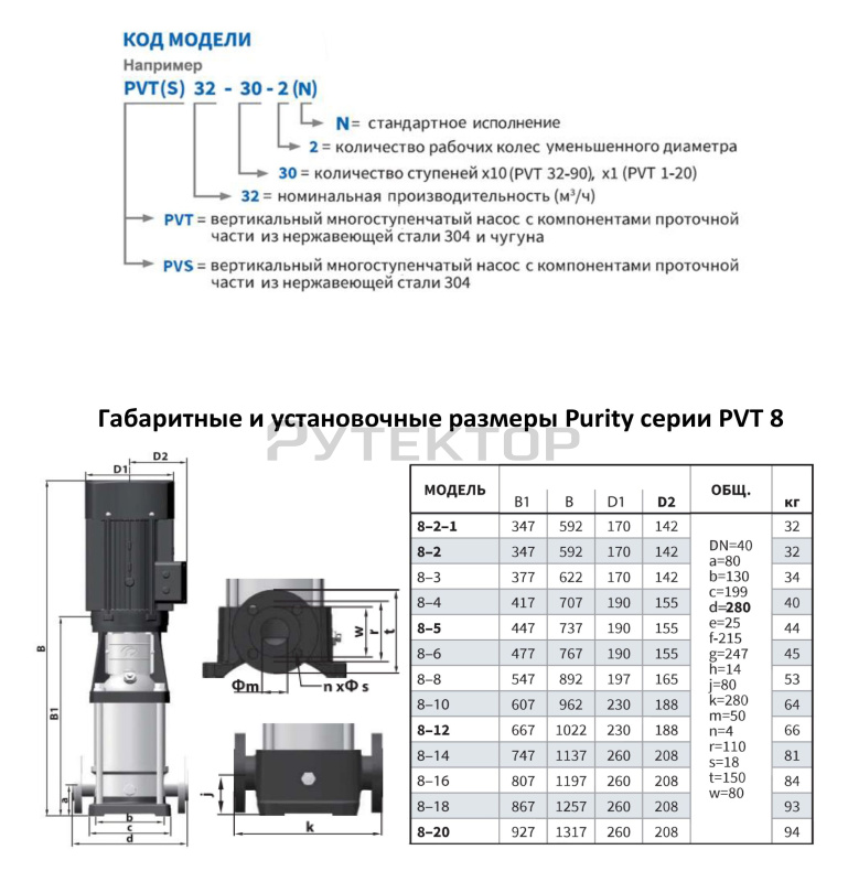 Вертикальный многоступенчатый насос PURITY PVT 8-14 (N)