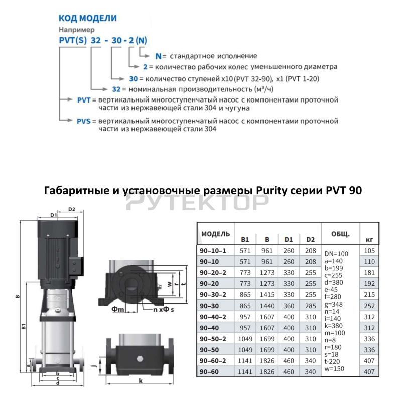 Вертикальный многоступенчатый насос PURITY PVT 90-60-2 (N)